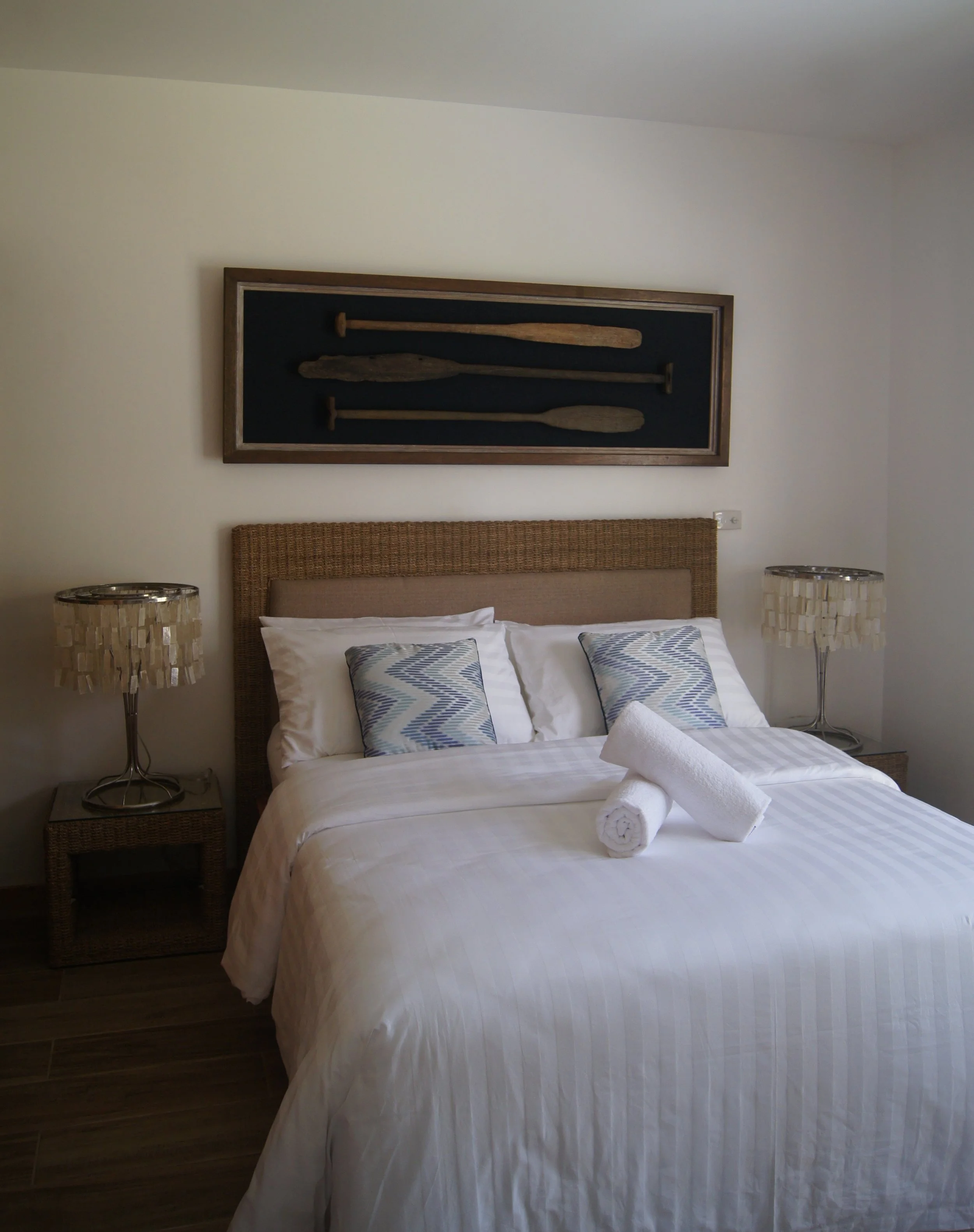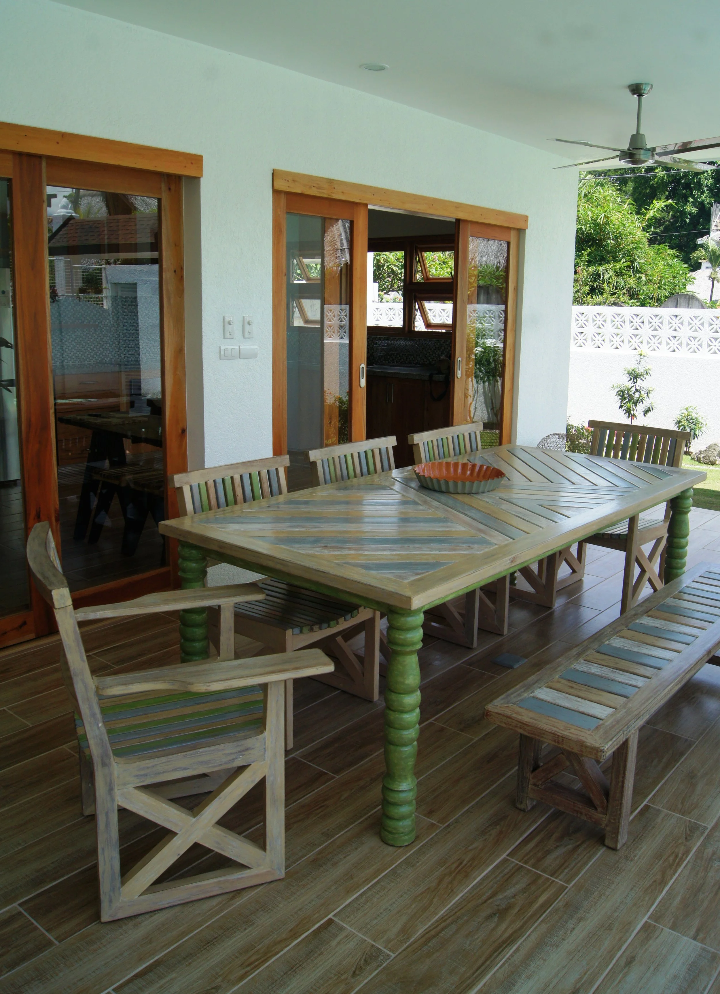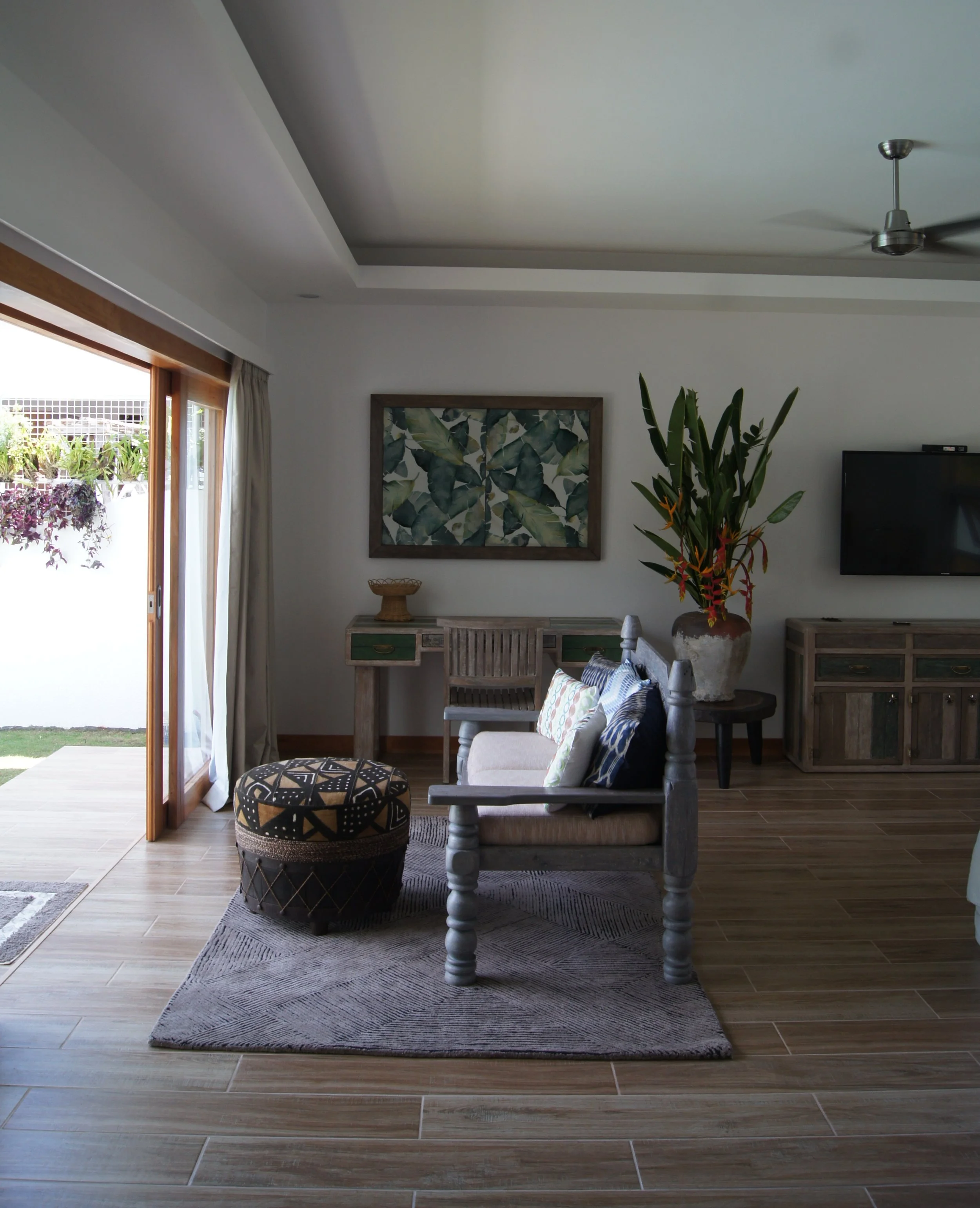 The Pura Vida Resort, an old patron since 14 years ,commissioned me the interiors of their first luxury three bedroom villas. Fiesta, is a celebration of tropical and ethnic aesthetics. Daybeds with tribal textiles, green and white stained woods, fiber weavings and shell lamps. Baskets, Rattan hammocks and boat paddles evoke the beach lifestyle.