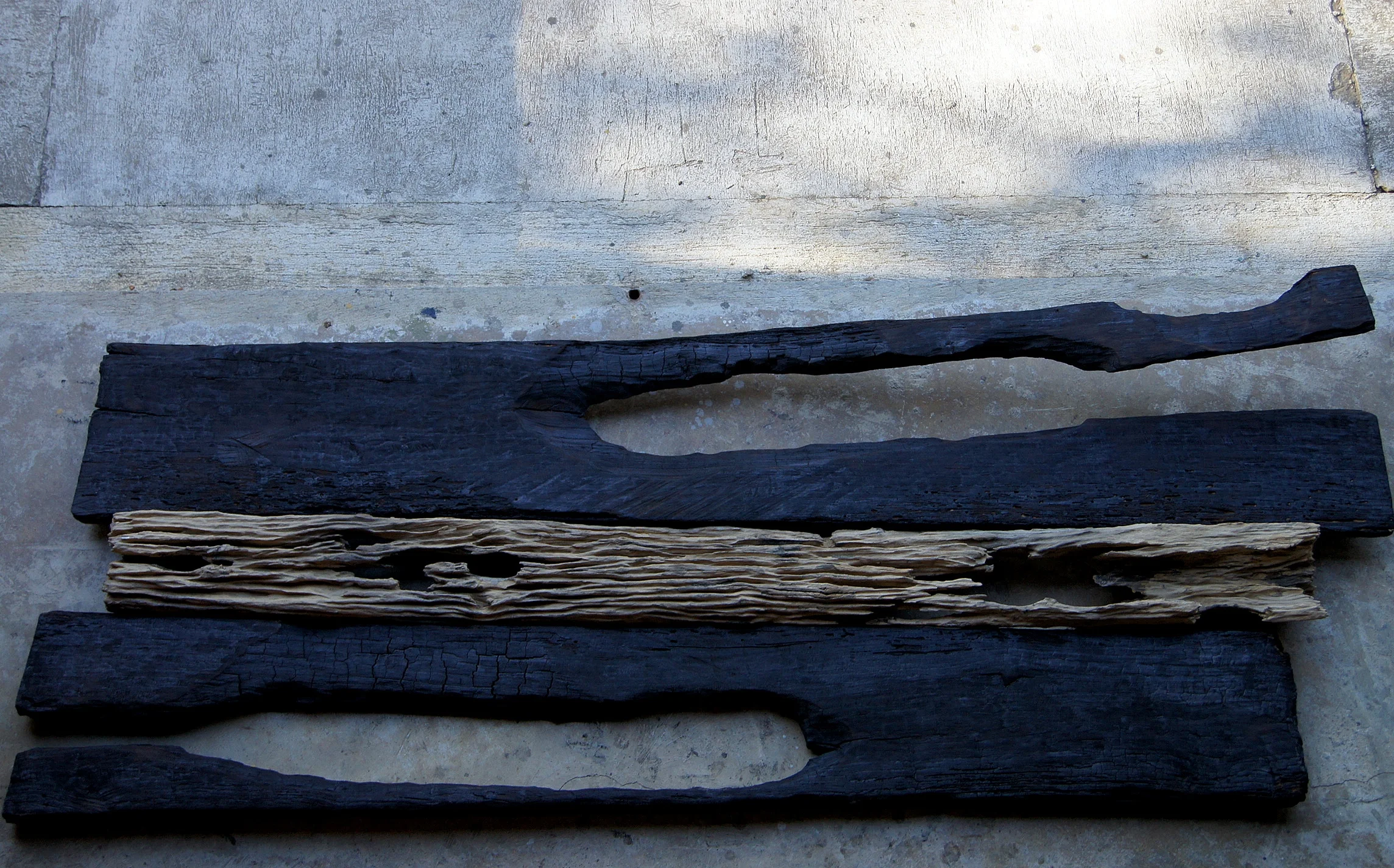 After art school abroad I was commissioned. to do a series of wall sculptures for a German client. The result was a study of natural forms executed in rich hardwoods, smooth and polished juxtaposed with the rough and textured. It was an exercise in a balanced composition that also became evident in succeeding furniture pieces. Years after, a Manila collector also asked for a wall piece. I created a rare charred object, delicate, and mysterious.